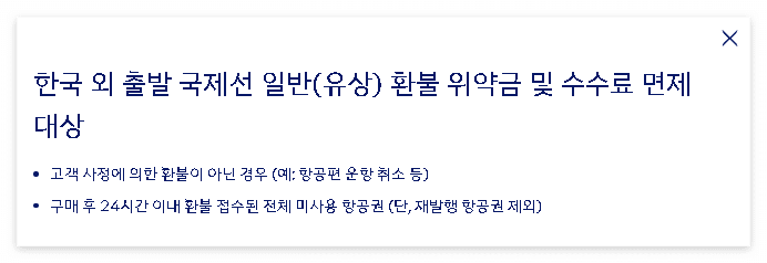 - (상세) 한국 외 출발 국제선 일반(유상) 환불 위약금 및 수수료 면제 대상