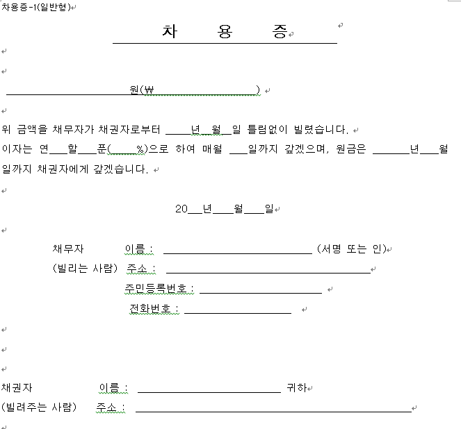 추후 차용증을 실제 예시와 함께 내용 공유하는 시간을 가지도록 하겠습니다.