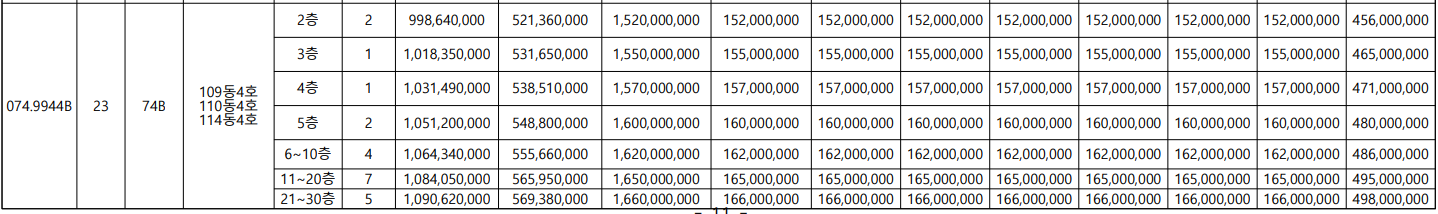 - 74 타입 (전체): 15.4억 ~ 16.7억