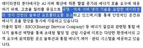 - AI데이터센터를 위한 냉각 전반의 솔루션 포트폴리오 보유(AI사용에 따른 데이터센터 발열 증가)